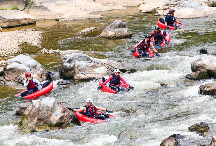 来到麟蹄美山槭树村可以体验River bugging, 就像皮艇,但是不使用桨,利用手和脚来进行一人漂流。