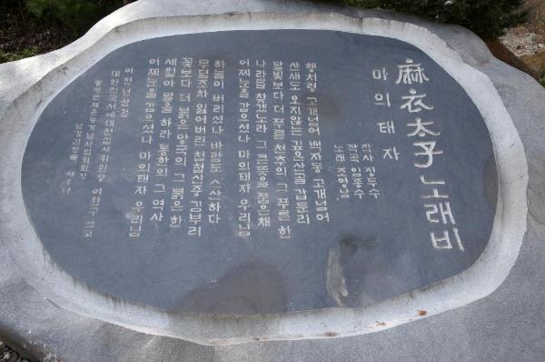 홍천에서부터 행치령에 올라 인제 내린천을 지나는 와인딩 코스의 정상에 마의태자 노래비가 있다. 아직은 인제군의 대표적인 문화적 자원으로 이름을 알리고 있지는 않지만, 내린천을 지나는 와인딩 코스를 즐기는 마니아들 사이에서 그 이름을 알리고 있다. 행치령 정상에서 가지는 잠깐의 휴식시간 사이 마의태자 노래비와 함께 사진을 찍는 옆으로 펼쳐지는 아름다운 경치는 예술이라 표현하기에 부족함이 없다. 이른 새벽에 내려앉은 서리로 눈꽃이 핀듯한 경치는 정말 몽환적인 느낌과 함께 마의태자를 다시금 떠올리게 한다.
